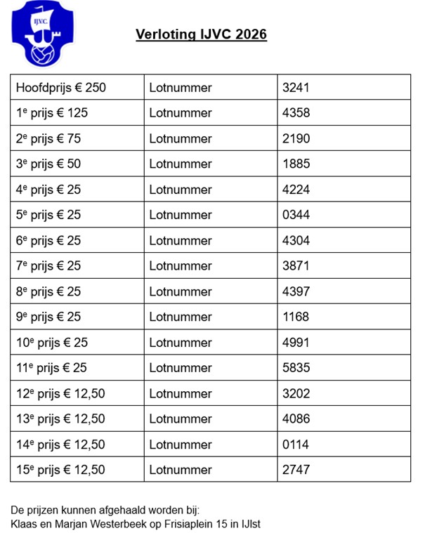 Uitslag IJVC verloting 2026